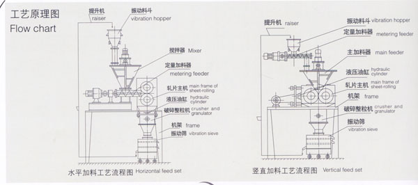 特點 干粉直接制粒,無需任何粘結(jié)劑。 顆粒的強度可以調(diào)整。通過調(diào)節(jié)軋輥的壓力,控制顆粒的強度。 產(chǎn)品為不規(guī)則顆粒。 連續(xù)生產(chǎn)、生產(chǎn)能力大、自動化程度高,適合工業(yè)化生產(chǎn)。 造粒成本低。 加料范圍 為了使粉體在軋輥的全部寬度范圍內(nèi)分布均勻,提高設(shè)備的工作能力,對軋輥寬度120mm以下的機組采用豎直加料,對軋輥寬度160mm以上的機組采用水平方向雙螺桿加料。